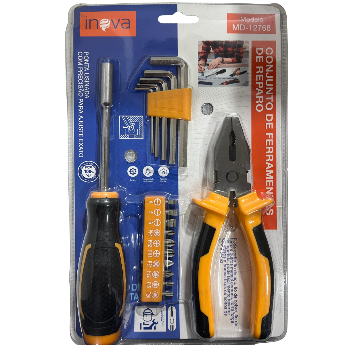 O Conjunto de Ferramentas de Reparo Inova MD-12768 foi desenvolvido para atender desde pequenos reparos domésticos até manutenções mais detalhadas. Compacto e versátil, reúne as principais ferramentas em um único kit, oferecendo praticidade e eficiência para o consumidor. É ideal para lojistas que buscam um produto de alto giro, pois atende a diferentes perfis de clientes — desde usuários domésticos até profissionais que precisam de um kit portátil para o dia a dia.